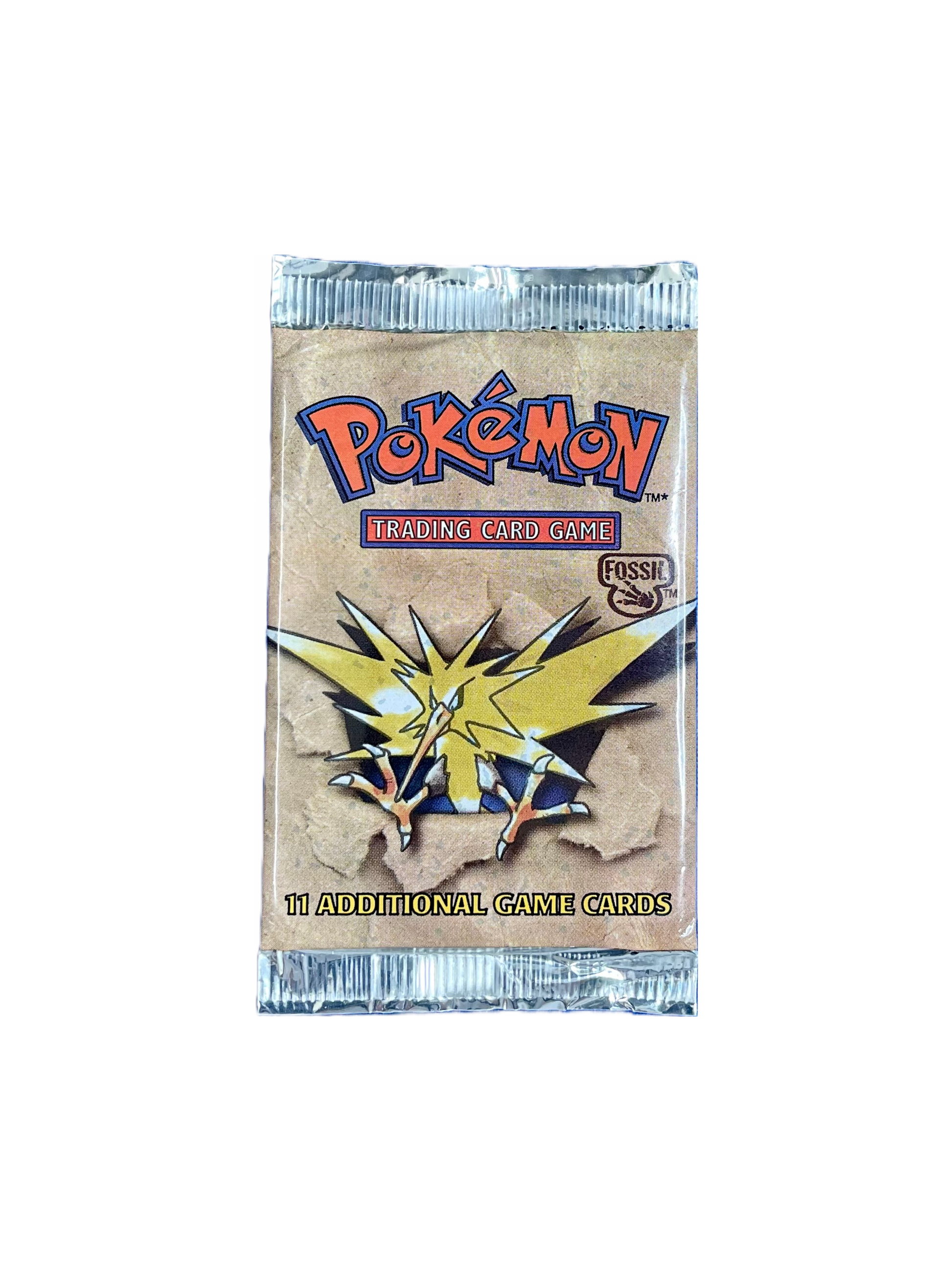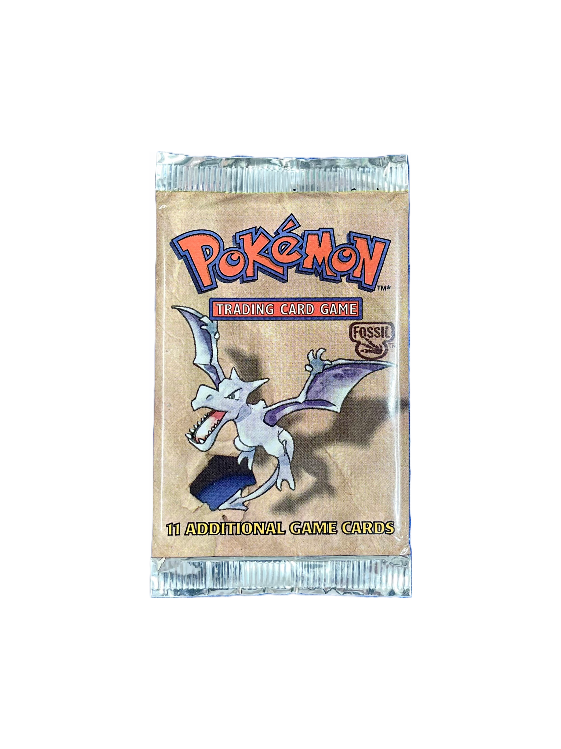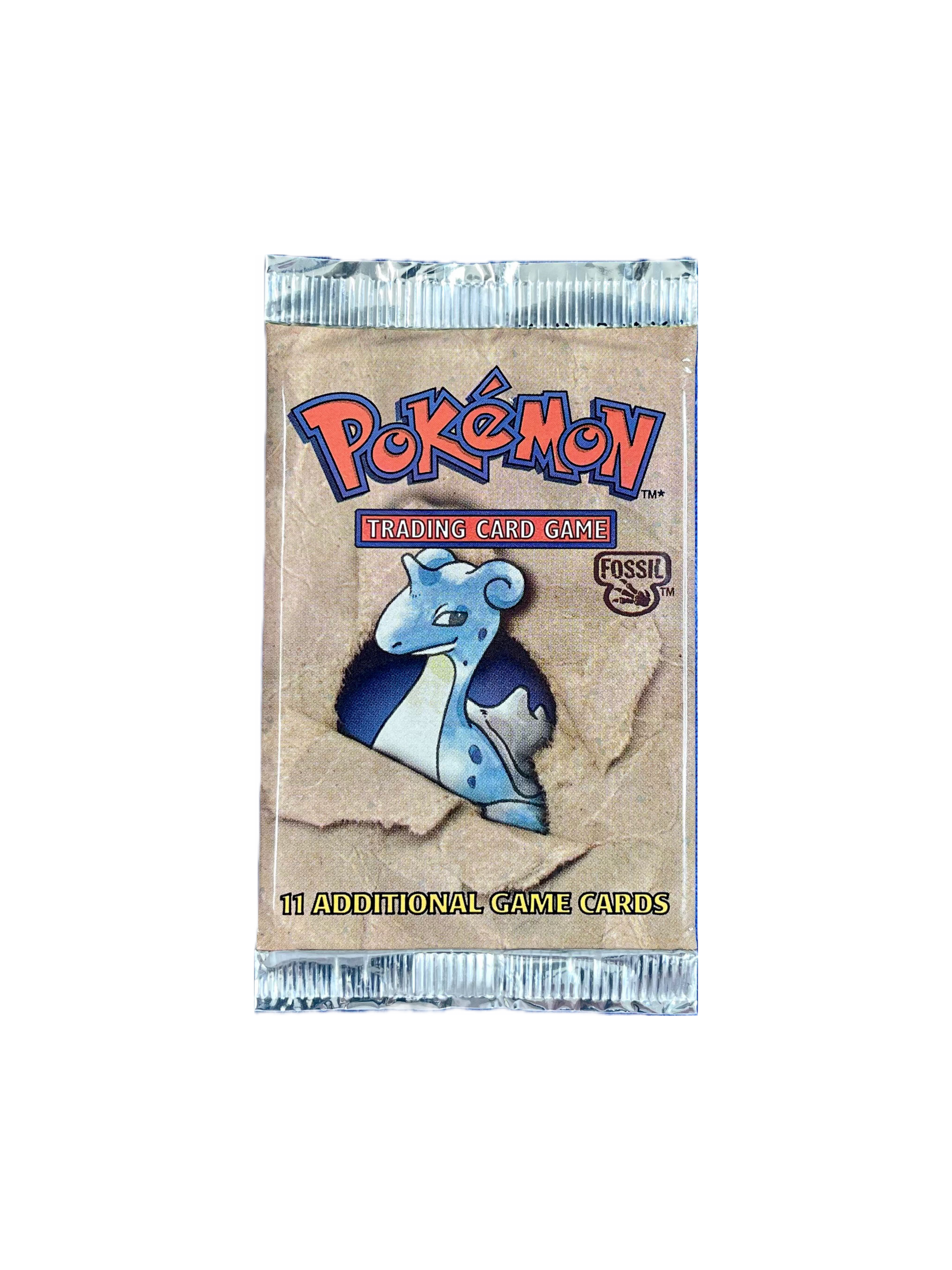 Fossil Unlimited packs sold in Australia circa 1999. These packs feature the extremely rare red logo coloring that replaced the original yellow. This was done to help combat counterfeiting. It is not recommended to open as the value value lies in the sealed package.