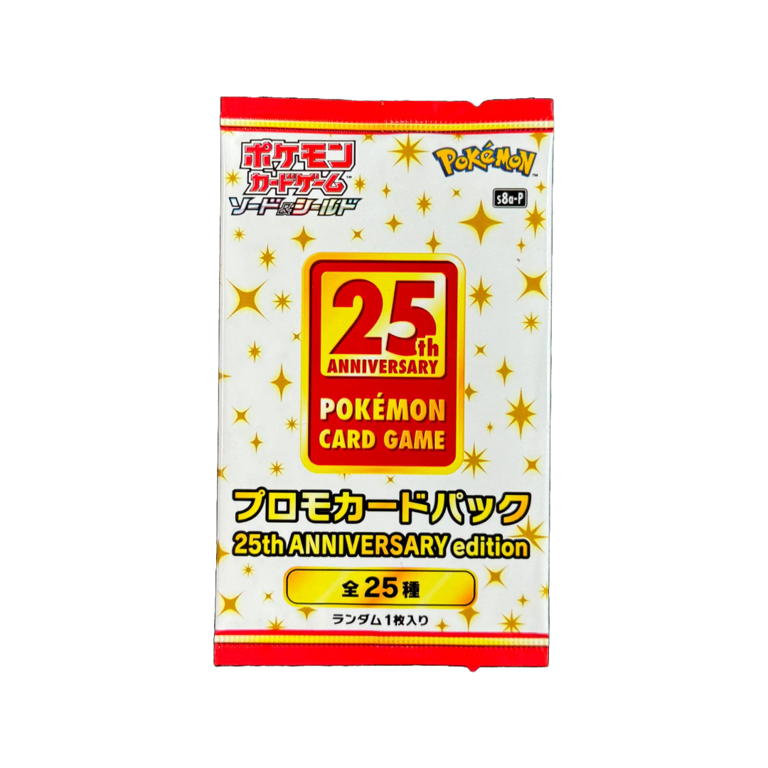 The Promo Card Pack 25th Anniversary Edition is a promotional Pokemon Trading Card Game set released in Japan, South Korea, Taiwan, Hong Kong, Thailand, and Indonesia. It complements the 25th Anniversary Collection and features close replicas of popular cards from different Eras of the TCG. It cannot be used for any official tournaments.