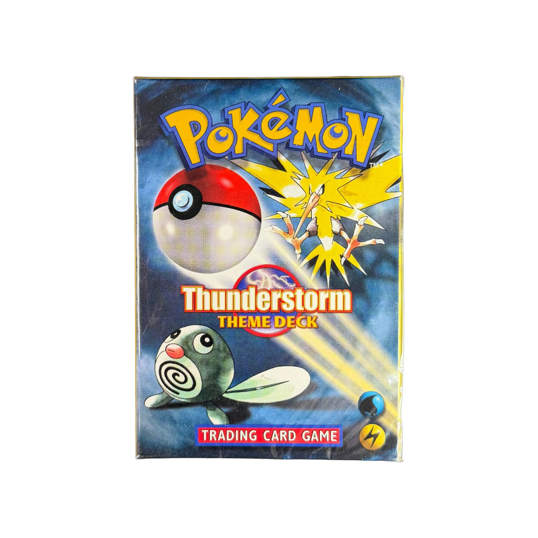 Thunderstorm Theme Deck from 2000. Includes a complete 60-card Water and Lightning deck with the exclusive Cosmos Holographic Zapdos.